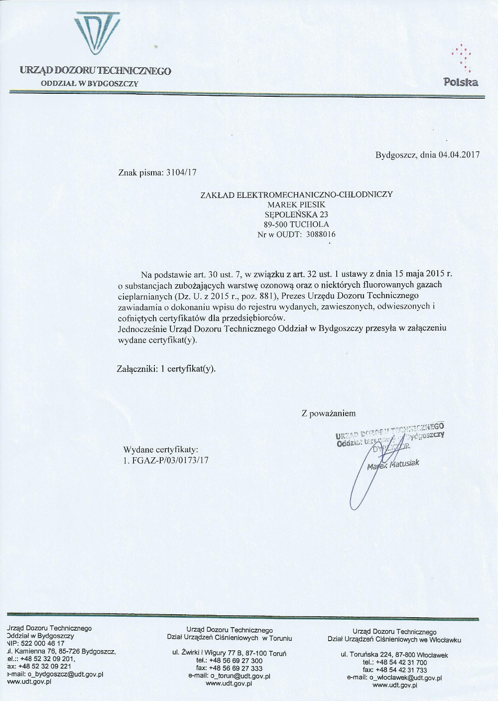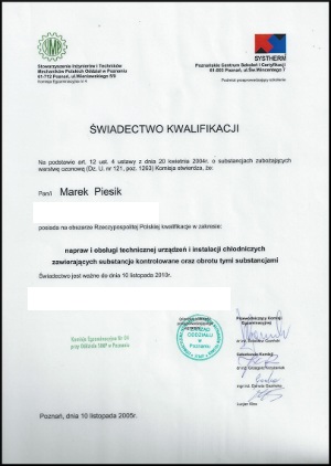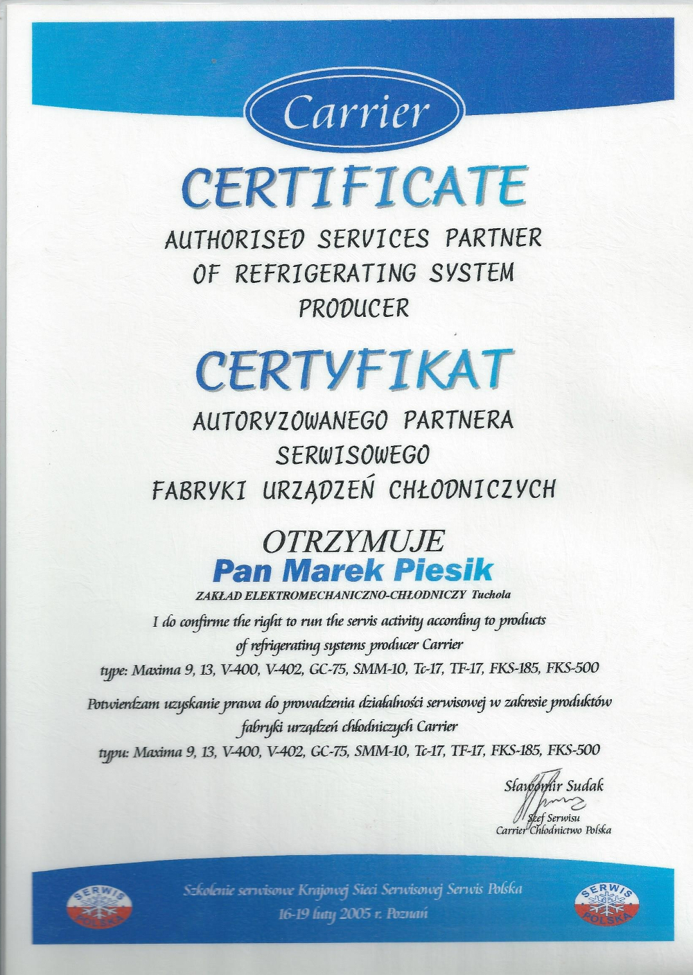 Zakład elektromechaniczno-chłodniczy prowadzę od 1987 roku. Na początku zajmowałem się naprawą sprzętu AGD oraz przezwajaniem silników i naprawą elektronarzędzi. Po pewnym czasie działalność rozszerzyłem o drobne chłodnictwo (lodówki, zamrażarki). W międzyczasie rozpocząłem regeneracje agregatów do urządzeń przemysłowych. W dalszym rozwoju firmy zacząłem montować komory chłodnicze, zbiorniki do mleka oraz dojarki z instalacjami wodnymi. Przystąpiłem również od 2002 roku do sieci serwisantów obsługujących markety między innymi : IGLO-HURT-SERWIS POZNAŃ, IBC EURO SERWIS SP. Z.O.O. WROCŁAW, SYSTEM SERWIS POZNAŃ, TAM POLSKA. Rozpocząłem współprace z kontrahentami sprzedającymi klimatyzatory. W związku z tym rozpocząłem montaż oraz konserwacje klimatyzatorów firm LENNOX, LG, WHIRLPOOL, VIVAX oraz pomp ciepła. Później zacząłem też montaż komór chłodniczych.