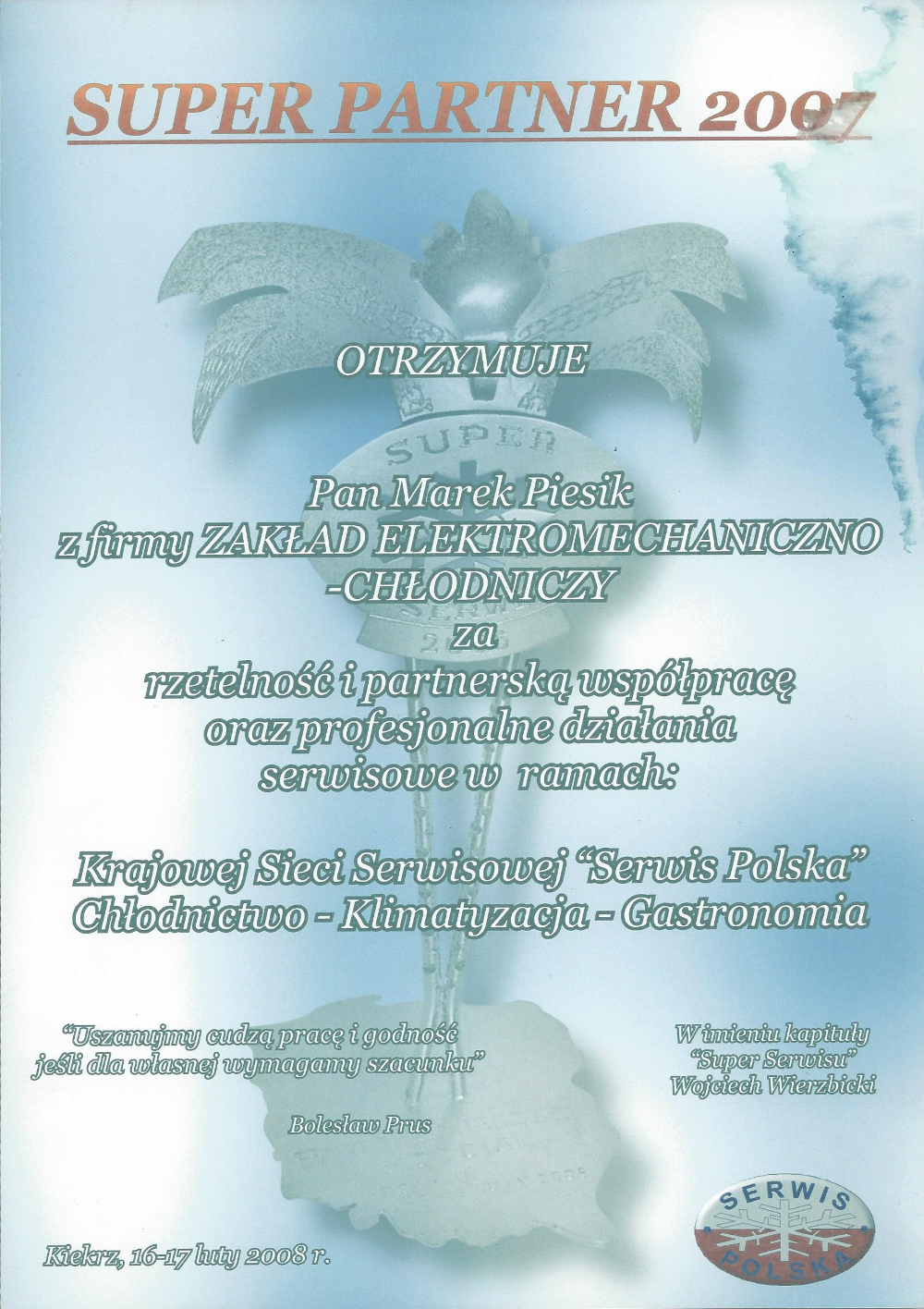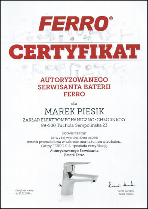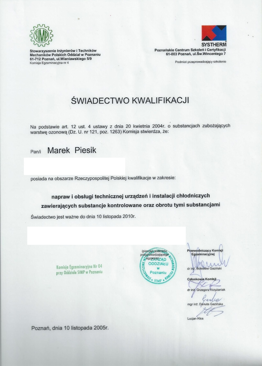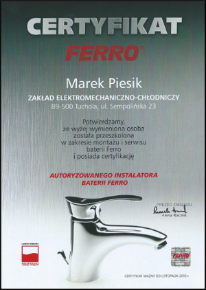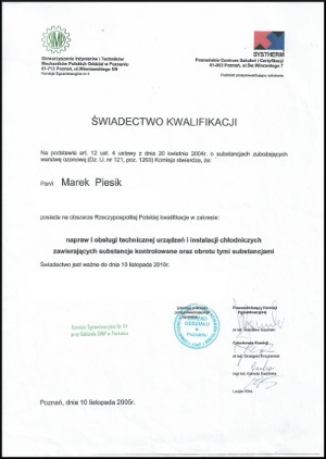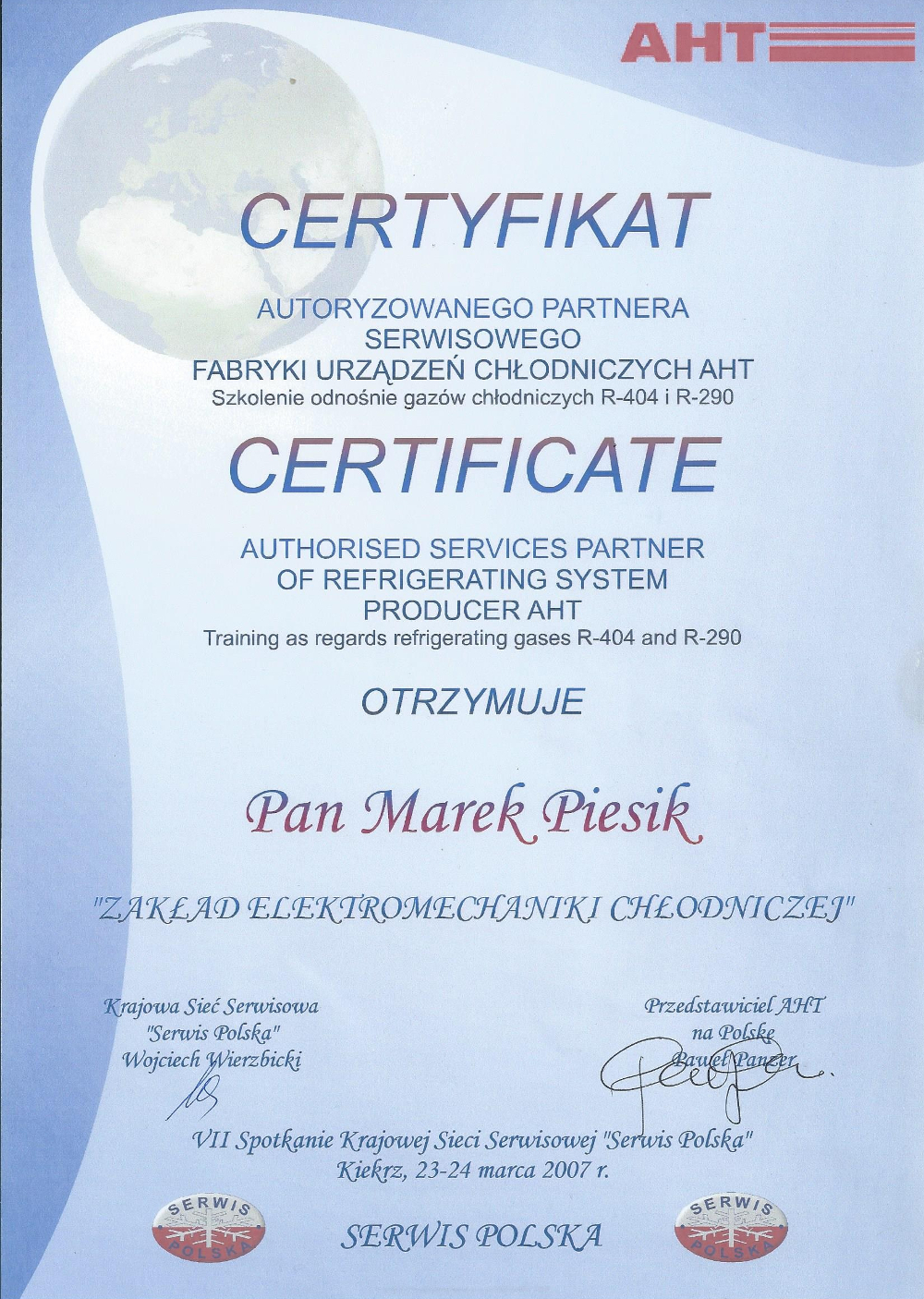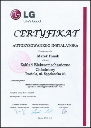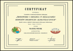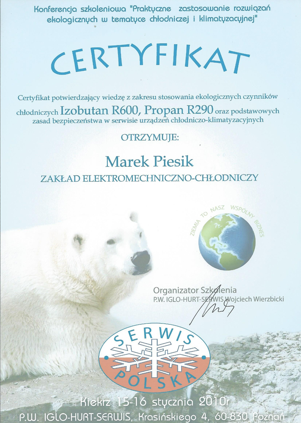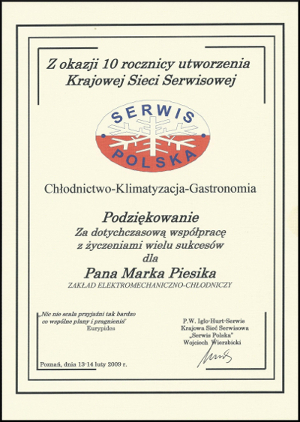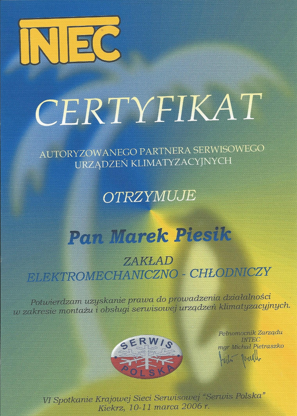 Zakład elektromechaniczno-chłodniczy prowadzę od 1987 roku. Na początku zajmowałem się naprawą sprzętu AGD oraz przezwajaniem silników i naprawą elektronarzędzi. Po pewnym czasie działalność rozszerzyłem o drobne chłodnictwo (lodówki, zamrażarki). W międzyczasie rozpocząłem regeneracje agregatów do urządzeń przemysłowych. W dalszym rozwoju firmy zacząłem montować komory chłodnicze, zbiorniki do mleka oraz dojarki z instalacjami wodnymi. Przystąpiłem również od 2002 roku do sieci serwisantów obsługujących markety między innymi : IGLO-HURT-SERWIS POZNAŃ, IBC EURO SERWIS SP. Z.O.O. WROCŁAW, SYSTEM SERWIS POZNAŃ, TAM POLSKA. Rozpocząłem współprace z kontrahentami sprzedającymi klimatyzatory. W związku z tym rozpocząłem montaż oraz konserwacje klimatyzatorów firm LENNOX, LG, WHIRLPOOL, VIVAX oraz pomp ciepła. Później zacząłem też montaż komór chłodniczych.